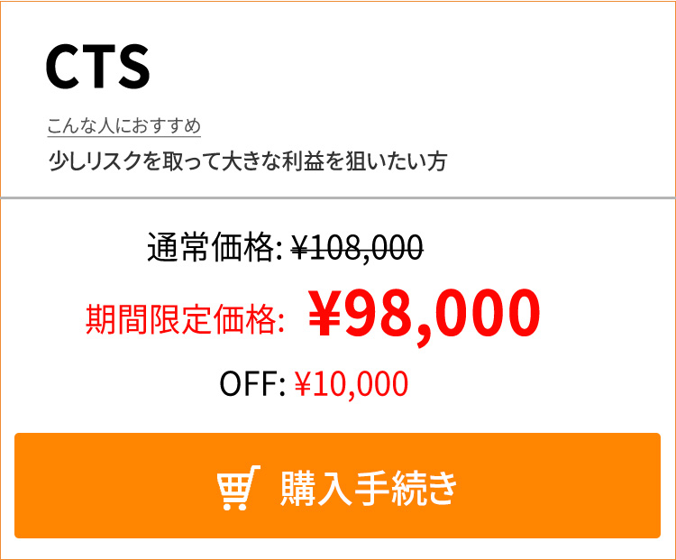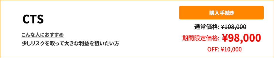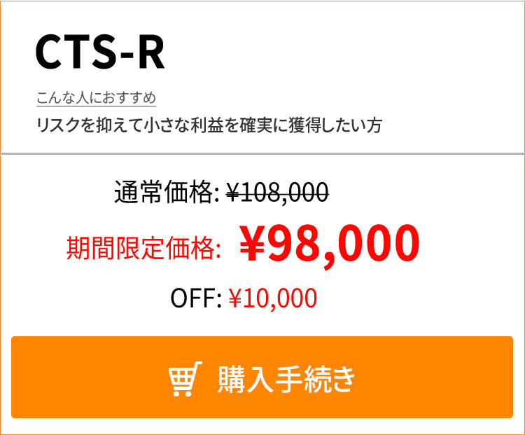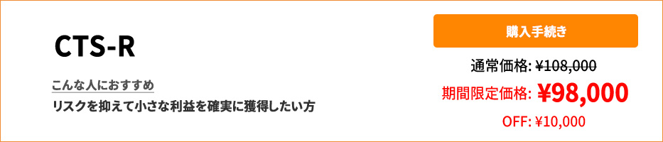 CTSの最上位版【CTS-pro】と逆張り型のCTS-Rに関しては指定口座がありますので予め御了承の上お買い求め下さい。